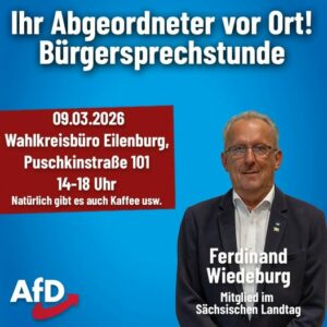 Am kommenden Montag findet in meinem Wahlkreisbüro in Eilenburg eine der nun monatlichen Bürgersprechstunden statt.