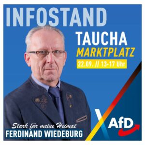Am Montag ist unser Abgeordneter Ferdinand Wiedeburg von 13 – 17 Uhr in Taucha auf dem Marktplatz vor Ort.